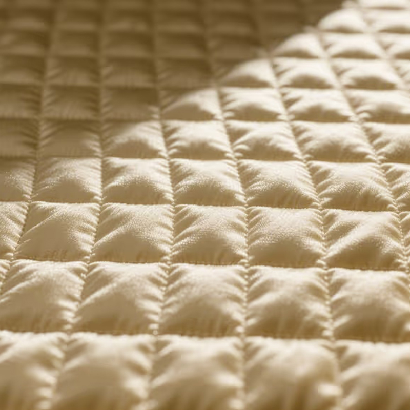 Imitation Brocade Diamond Grid Fabric är ett exklusivt tyg vävt genom utsökt jacquardhantverk. Ytan presenterar fina diamantmönster med uppenbar tredimensionell och skiktad känsla. Dess glans och textur gör att tyget visar en lågmäld lyx och blir ett viktigt val i modern modedesign. Tygets utsökta jacquarddesign förstärker inte bara dess visuella effekt, utan ger också en unik känsla av konst och modernitet till den övergripande produkten. På grund av dess eleganta mönster och starka tredimensionella känsla, används detta tyg flitigt i modeväskor och kläddekoration.