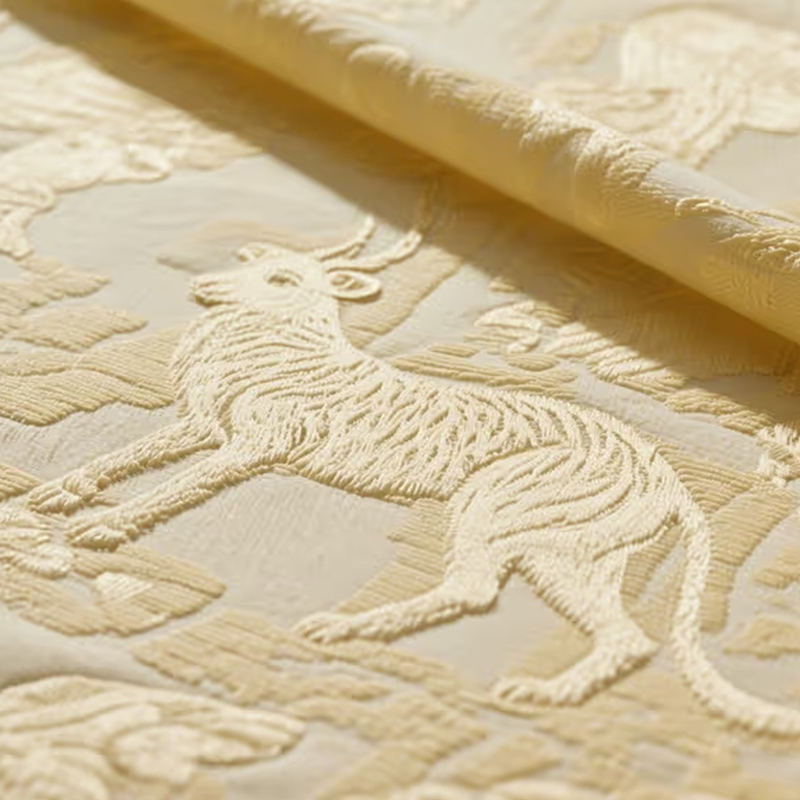 Single Jacquard Fabric är ett exklusivt tyg vävt på en enda vävstol. Det utsökta jacquardmönstret på ytan ger den en unik tredimensionell känsla och visuell effekt, och baksidan är platt och har överlägsen textur. Den speciella processen för detta tyg förstärker inte bara den tredimensionella känslan av mönstret, utan gör det också visa uppenbara texturförändringar i beröring och bibehåller också tygets lätthet och komfort, vilket är lämpligt för olika modedesignbehov. Dess utsökta jacquardmönster och delikata vävprocess gör tyget dekorativt och exklusivt, vilket gör det till ett idealiskt val för exklusiva modekläder och heminredning. Single Jacquard Fabric är lämplig för modekläder, speciellt tröjor, kjolar, kappor och andra stilar. Det tredimensionella mönstret av detta tyg ger en unik känsla av design och lager till kläderna, som är särskilt lämpliga att bära på hösten och vintern, ger värme samtidigt som känslan för mode inte tappas.