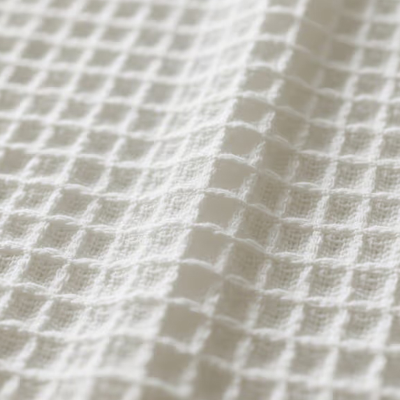 Waffle Knit Comfort Fabrics är ett vävt tyg med en unik rutnätsliknande konkav-konvex textur. Dess yta är formad som en våffla, som har utmärkt andningsförmåga och utmärkt svettabsorbering. Denna struktur gör att tyget effektivt absorberar fukt och snabbt transporterar bort svett och håller huden torr. Den är lämplig att bära under högintensiv träning och kan snabbt absorbera och avdunsta svett för att säkerställa komfort under träning. Lättheten och mjukheten i Waffle Knit-tyget gör den mycket bekväm att bära på sommaren. Det används ofta i produktionen av sommarskjortor och andra kläder för att hålla kroppen sval i varmt väder. Tack vare sin goda andningsförmåga och svetttransporterande funktion är detta tyg mycket lämpligt för att göra sporthanddukar för att hjälpa idrottare att snabbt torka av svett och hålla sig torr under träning.